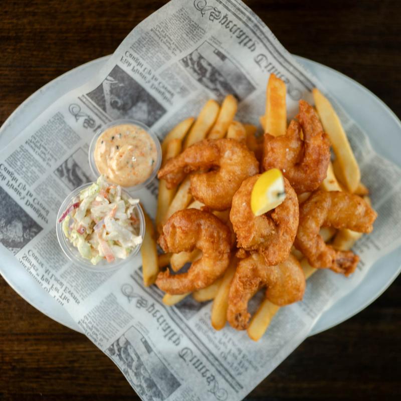 2 ppl for $32.00 | 4 ppl for $62.00 • Jumbo ale-battered shrimp, thick-cut English-style chips, served with Togarashi sauce on the side.