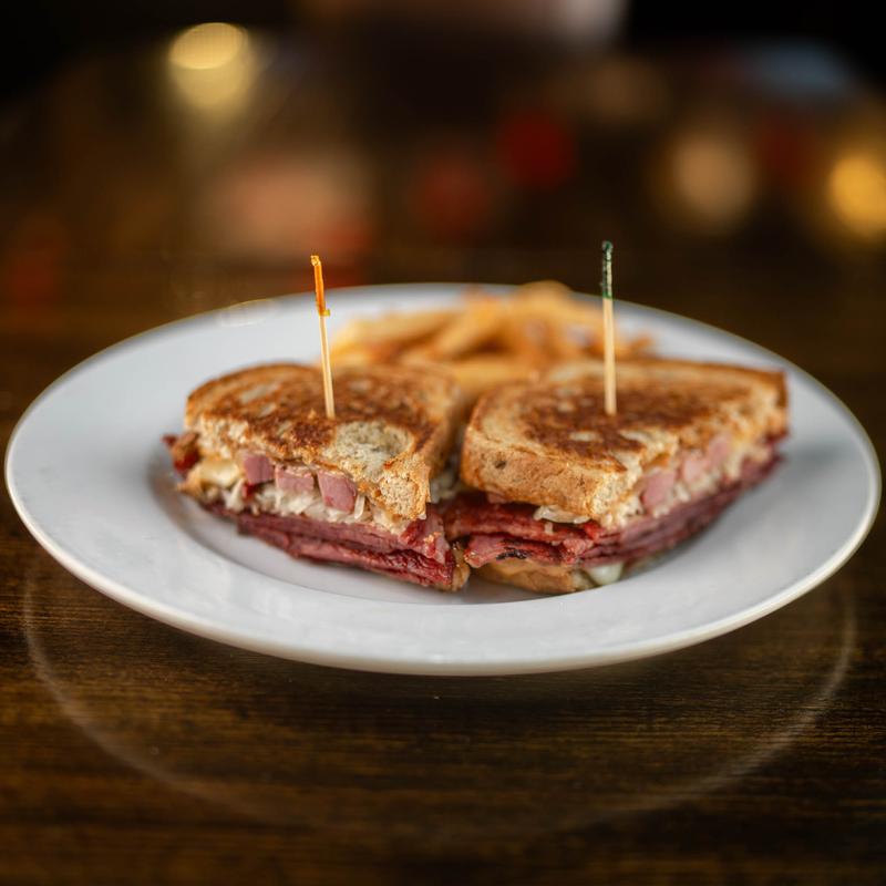Shaved first cut corned beef, sauerkraut, swiss cheese, and 1000 Island dressing, on grilled rye.